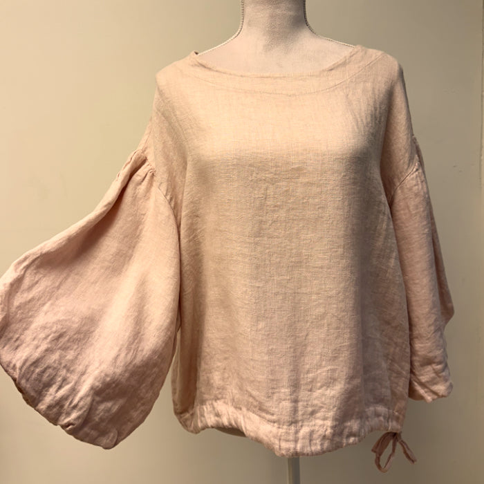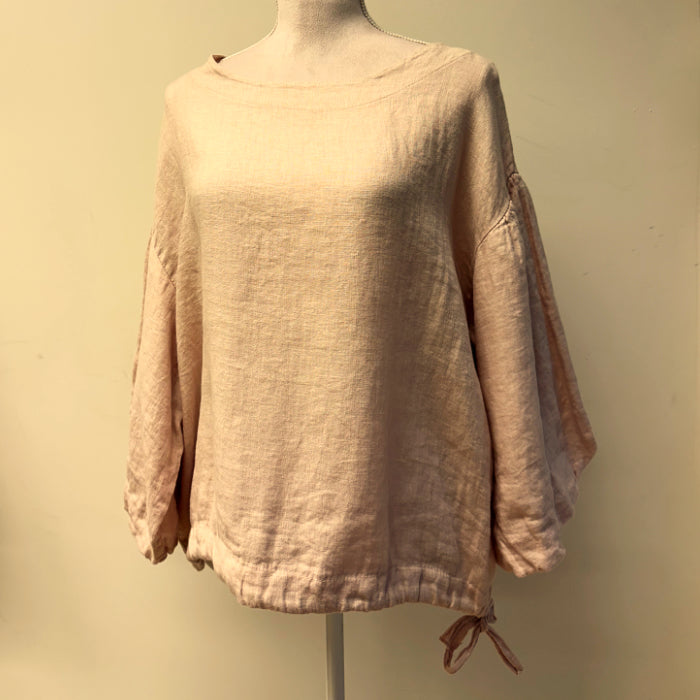 ByPias -merkin Bohemiana-malliston pehmeä, mukava pellavapusero. Nude väri - haalea vaaleanpunainen. Hihoissa kaksikertainen kangas. Helmassa kiristysnyöri.