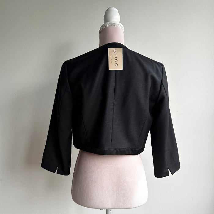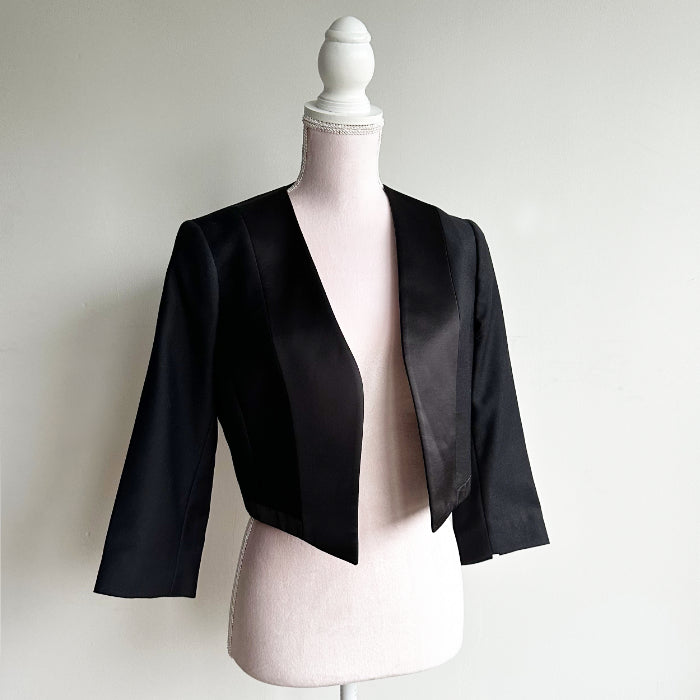Musta lyhyt satiini juhlajakku.