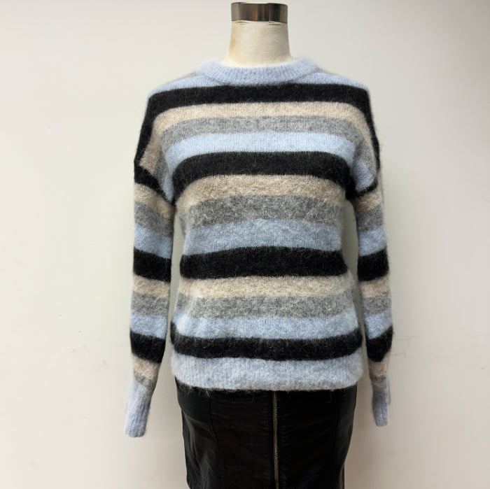 Lämmin villapaita, jossa kivat värit. Laskettu olkapäälinja.