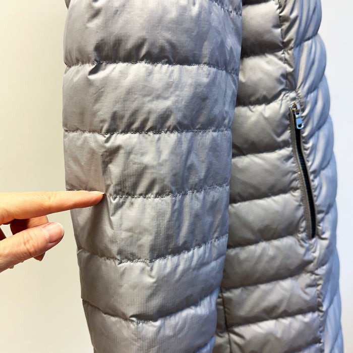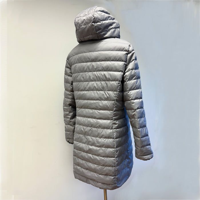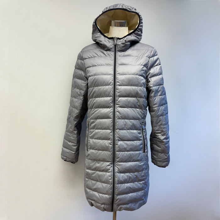 Dolomite-merkin käännettävä takki, jonka toinen puoli on harmaa ja toinen valkoinen. Harmaa puoli on kivannäköinen. Takki on laadukas, siinä on hyvä vetoketju ja taskut kummallakin puolella. Takin pituus on kätevä; ei liian lyhyt eikä liian pitkä. Takki on hieman tummempi kuin kuvassa.