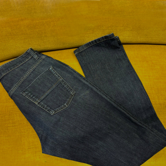 Mitat: vyötärön leveys 40cm, kokonaispituus 104cm, vyötärö-haara pituus n. 24cm, lahkeen pituus n. 80cm, lahkeen leveys reidestä n. 23cm, lahkeen leveys nilkasta 16,5cm.