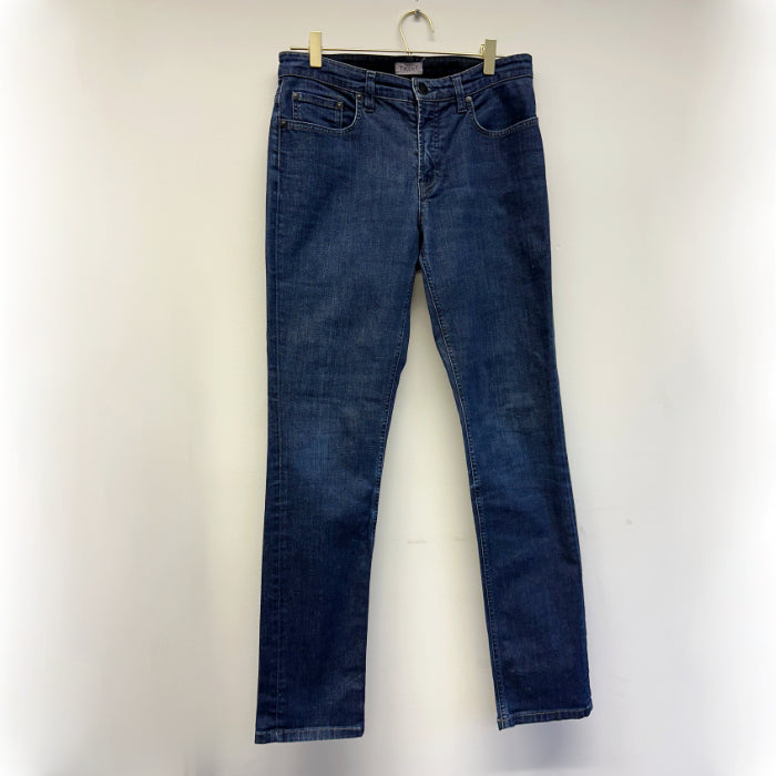 Joustavat, tummansiniset, kapeat farkut.