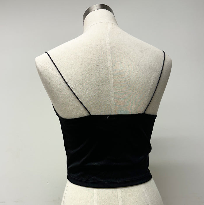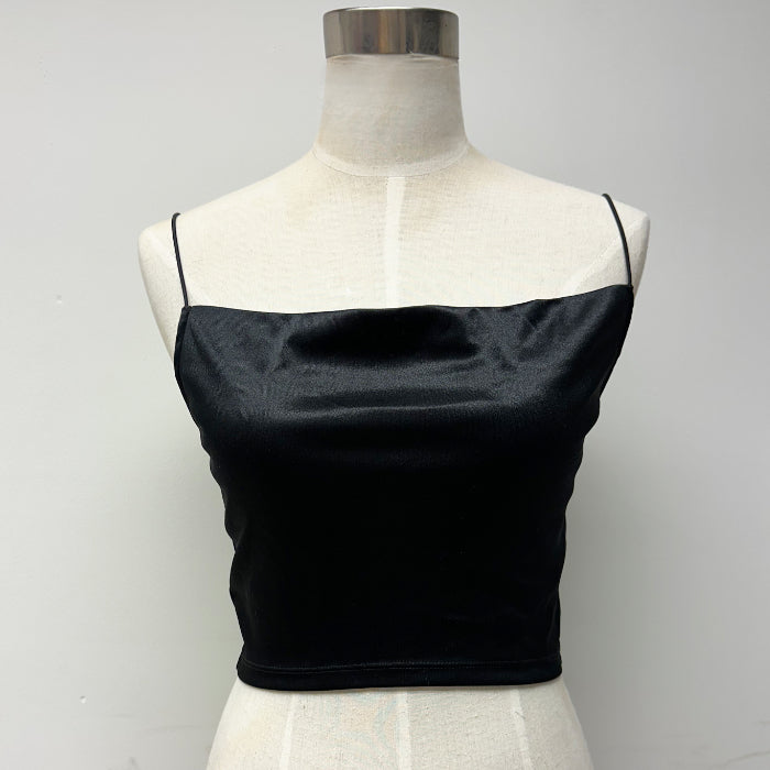 Spagettiolkaiminen lyhyt toppi, jossa satiinimainen kiilto.