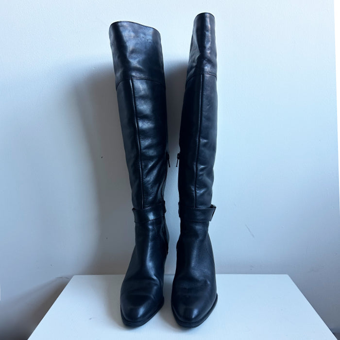 Kunto: jonkin verran jälkiä saappaan nahkapinnassa, muutoin hyvä.