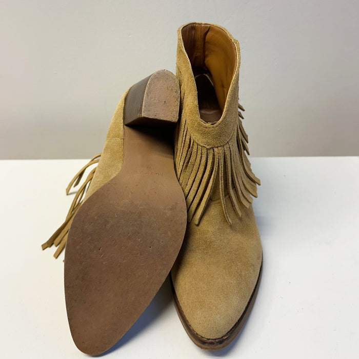 Kunto: pari kertaa käytetyt, joten pohjissa hieman käytön jälkeä, muuten hyväkuntoiset. Huom. etupuolella sävyero (huomattu vasta kuvausvaiheessa, ei käytettäessä). Näistä saa pitkäikäiset kengät, kun laitattaa suutarilla uudet kumiset kantalaput ja puolipohjat. Tällöin kengillä pysyy pystyssä myös talvikelillä.