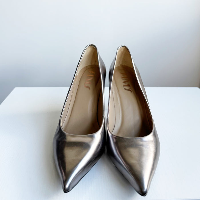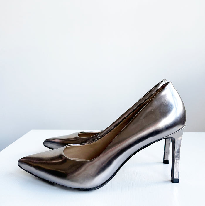 Upeat, juhlavat, metallinhohtoiset nahka-avokkaat.