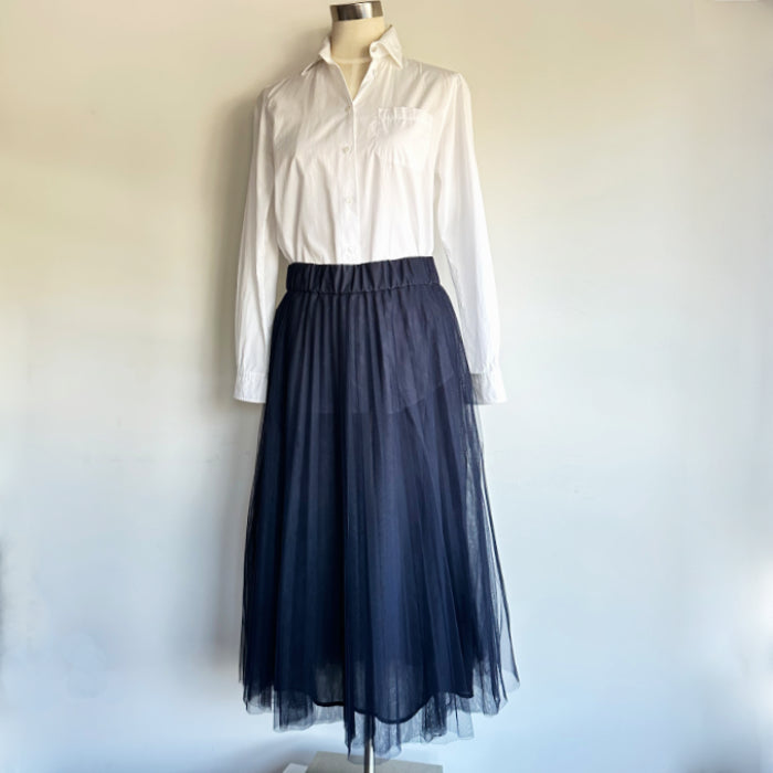 Italialainen, tummansininen, pitkä tyllihame. Hameessa on vuori (alushame) ja kuminauhavyötärö. Alushameen päällä kolme ohutta kerrosta tyllihamekangasta