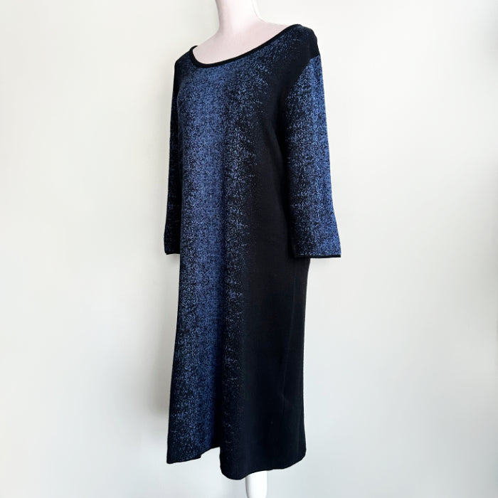 Gerry Weberin Samoon-malliston neulemekko. Mekossa on kahta väriä: trendikästä sinistä ja klassista mustaa. Mukava mekko viileämpään säähän.